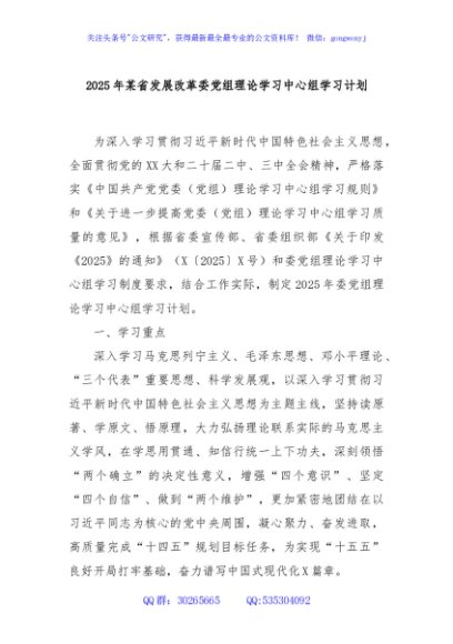 / 2025年某省发展改革委党组理论学习中心组学习计划