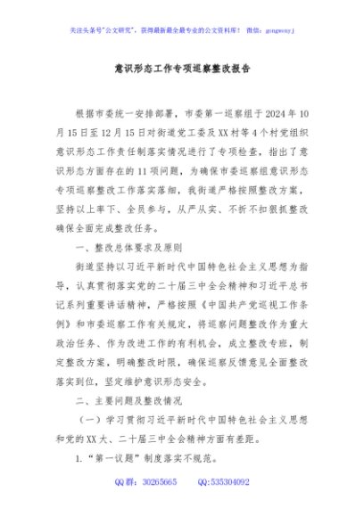 / 意识形态工作专项巡察整改报告