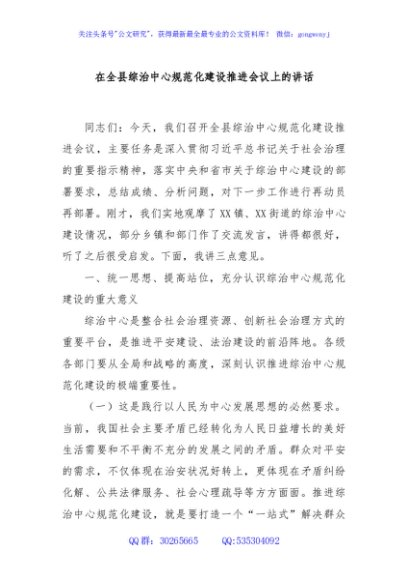/ 在全县综治中心规范化建设推进会议上的讲话
