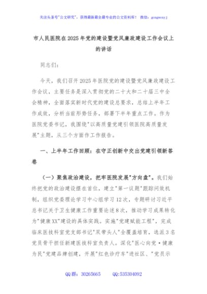 / 市人民医院在2025年党的建设暨党风廉政建设工作会议上的讲话