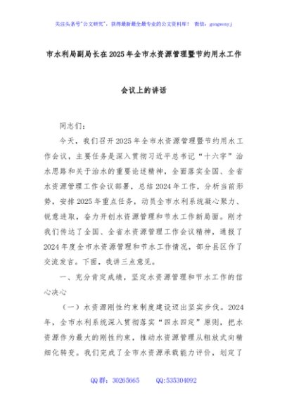 / 市水利局副局长在2025年全市水资源管理暨节约用水工作会议上的讲话