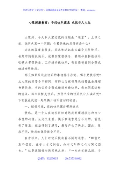 / 心理健康教育:寻找快乐源泉 成就非凡人生