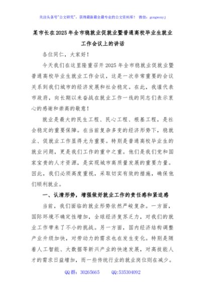 / 某市长在2025年全市稳就业促就业暨普通高校毕业生就业工作会议上的讲话