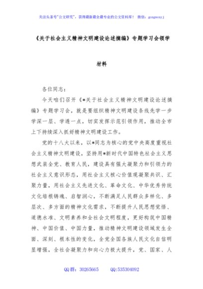 《关于社会主义精神文明建设论述摘编》专题学习会领学材料