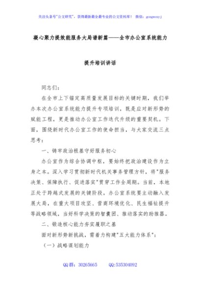 / 凝心聚力提效能服务大局谱新篇——全市办公室系统能力提升培训讲话