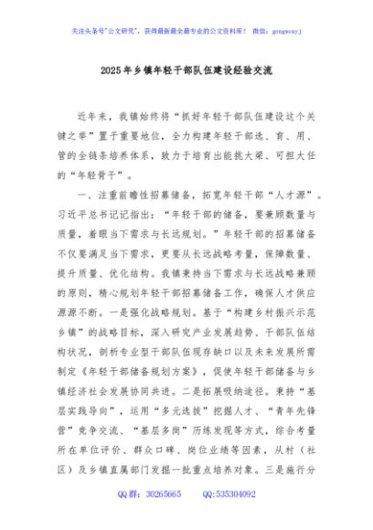 / 2025年乡镇年轻干部队伍建设经验交流