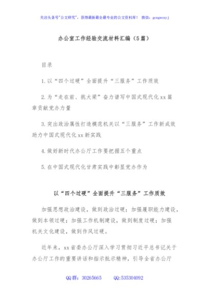 / (5篇)办公室工作经验交流材料汇编