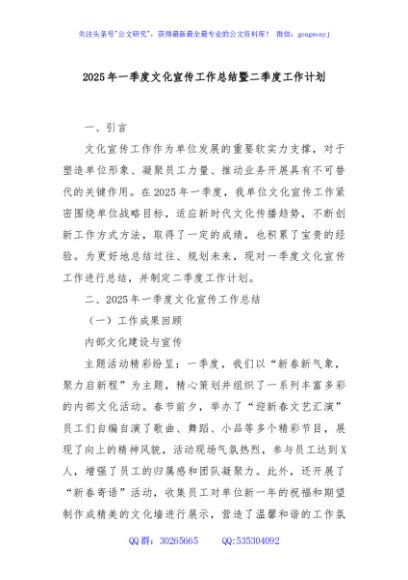 / 2025年一季度文化宣传工作总结暨二季度工作计划