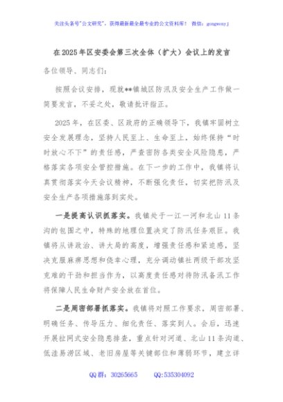 / 在2025年区安委会第三次全体(扩大)会议上的发言