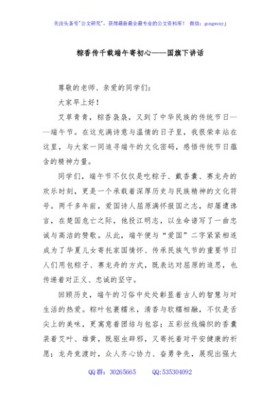 / 粽香传千载端午寄初心——国旗下讲话