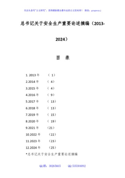 总书记关于安全生产重要论述摘编(2013-2024)