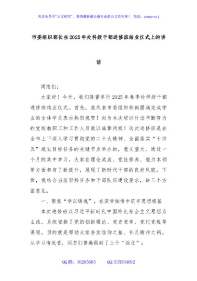 / 市委组织部长在2025年处科级干部进修班结业仪式上的讲话