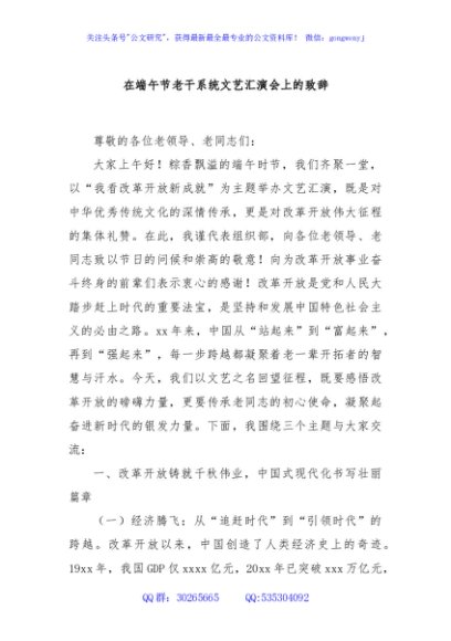 / 在端午节老干系统文艺汇演会上的致辞
