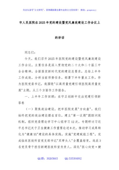 / 市人民医院在2025年党的建设暨党风廉政建设工作会议上的讲话