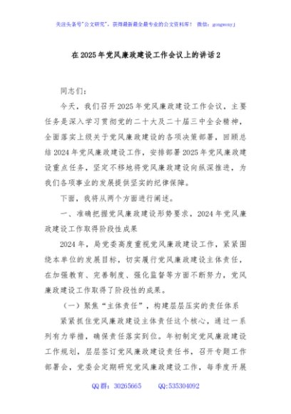 / 在2025年党风廉政建设工作会议上的讲话2
