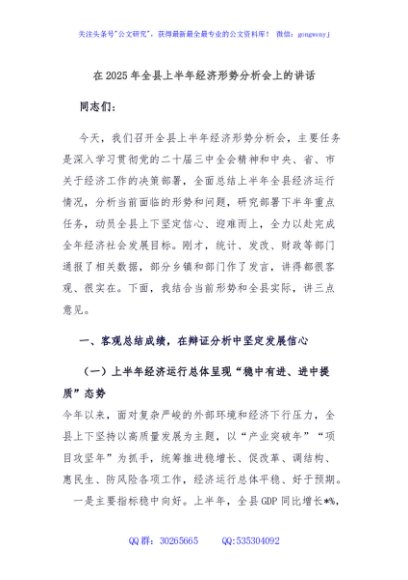 / 在2025年全县上半年经济形势分析会上的讲话