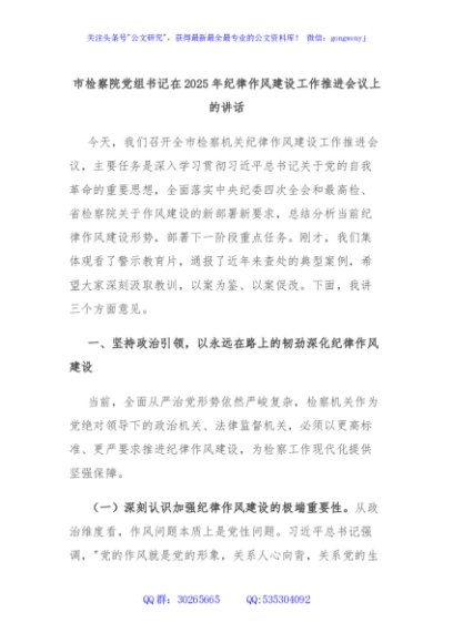 / 市检察院党组书记在2025年纪律作风建设工作推进会议上的讲话