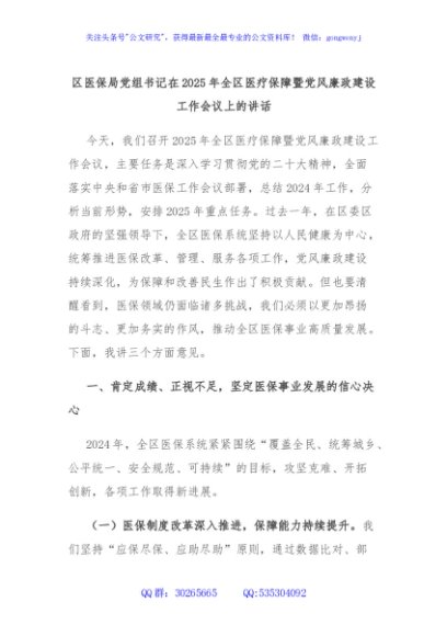 / 区医保局党组书记在2025年全区医疗保障暨党风廉政建设工作会议上的讲话