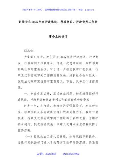 / 副局长在2025年市行政执法、行政复议、行政审判工作联席会上的讲话