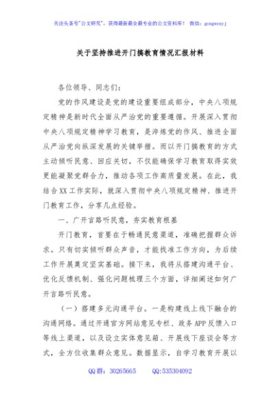 / 关于坚持推进开门搞教育情况汇报材料