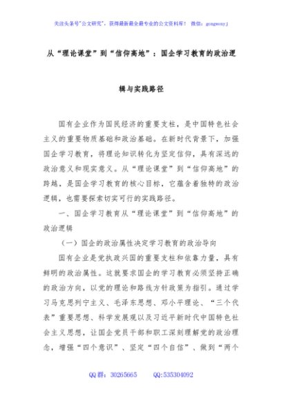从“理论课堂”到“信仰高地”:国企学习教育的政治逻辑与实践路径