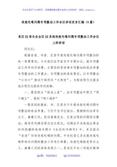 / (9篇)违规吃喝问题专项整治工作会议讲话发言汇编