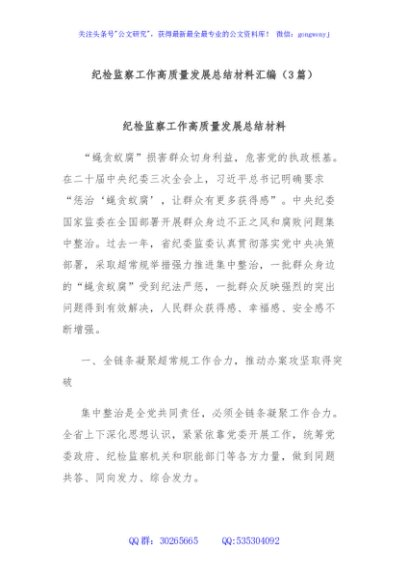 / (3篇)纪检监察工作高质量发展总结材料汇编