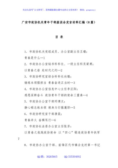 (8篇)广安市政协机关青年干部座谈会发言材料汇编