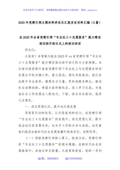 / (5篇)2025年党建引领主题材料讲话及汇报发言材料汇编