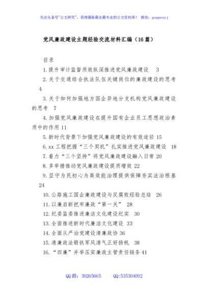 / (16篇)党风廉政建设主题经验交流材料汇编