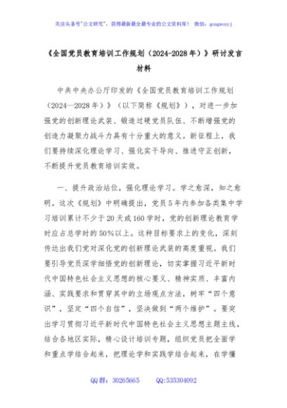 / 《全国党员教育培训工作规划(2024-2028年)》研讨发言材料