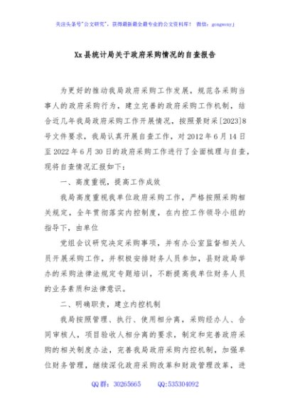/ Xx县统计局关于政府采购情况的自查报告
