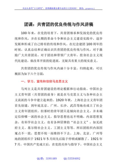 / 团课:共青团的优良传统与作风讲稿