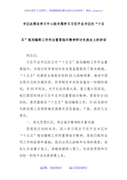 / 书记在理论学习中心组专题学习习近平总书记对“十五五”规划编制工作作出重要指示精神研讨交流会上的讲话