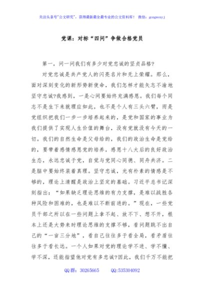 / 党课:对标“四问”争做合格党员