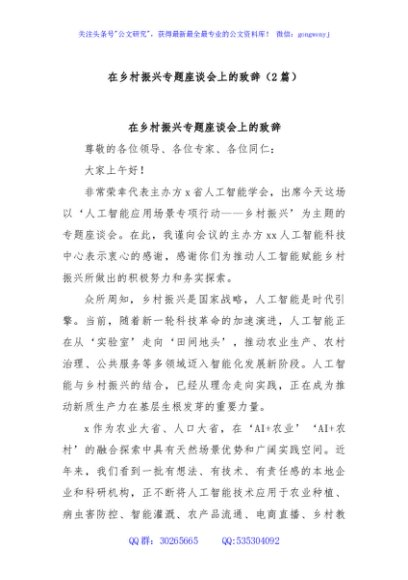 / (2篇)在乡村振兴专题座谈会上的致辞
