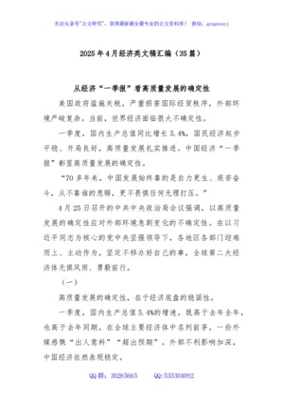 / (35篇)2025年4月经济类文稿汇编