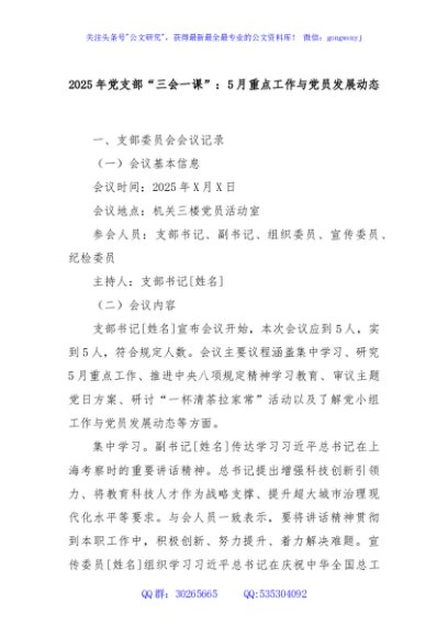 / 2025年党支部“三会一课”:5月重点工作与党员发展动态