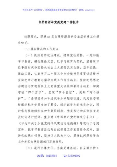 / 自然资源局党委党建工作报告