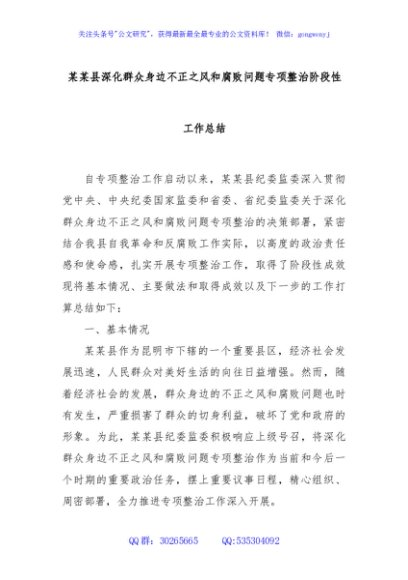 / 某某县深化群众身边不正之风和腐败问题专项整治阶段性工作总结