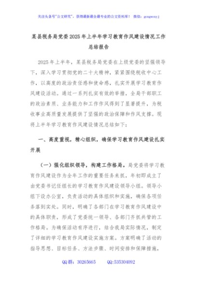 / 某县税务局党委2025年上半年学习教育作风建设情况工作总结报告