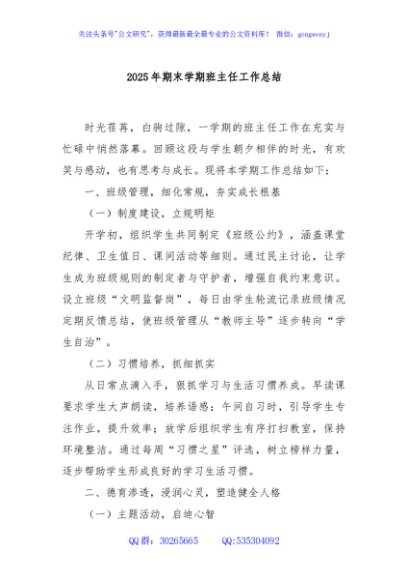 / 2025年期末学期班主任工作总结