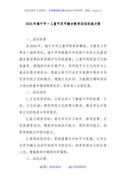 / 2025年端午节·儿童节双节融合教育活动实施方案