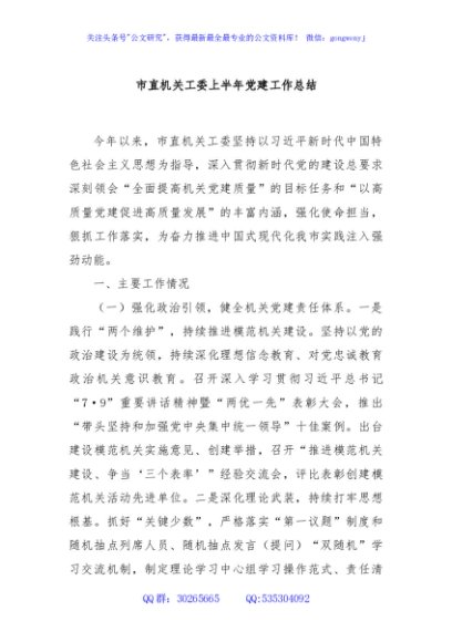 / 市直机关工委上半年党建工作总结