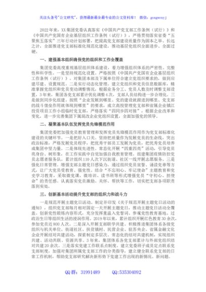 / 国企党委推进党支部标准化规范化建设经验材料