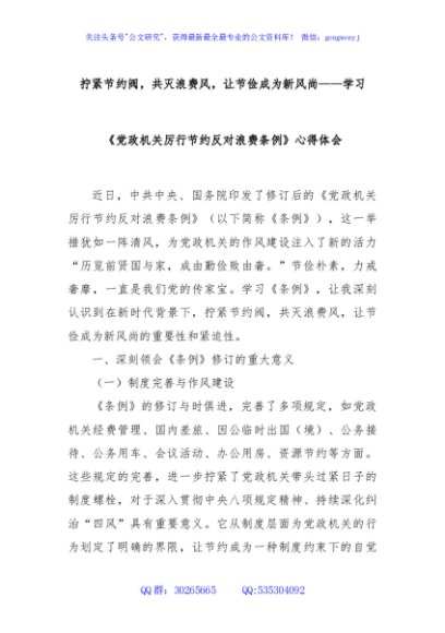 拧紧节约阀,共灭浪费风,让节俭成为新风尚——学习《党政机关厉行节约反对浪费条例》心得体会