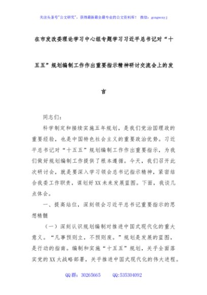 / 在市发改委理论学习中心组专题学习习近平总书记对“十五五”规划编制工作作出重要指示精神研讨交流会上的发言