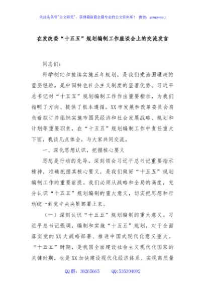 / 在发改委“十五五”规划编制工作座谈会上的交流发言