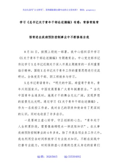 学习《总书记关于青年干部论述摘编》有感:常修常炼常悟常进在疾病预防控制事业中不断修炼自我