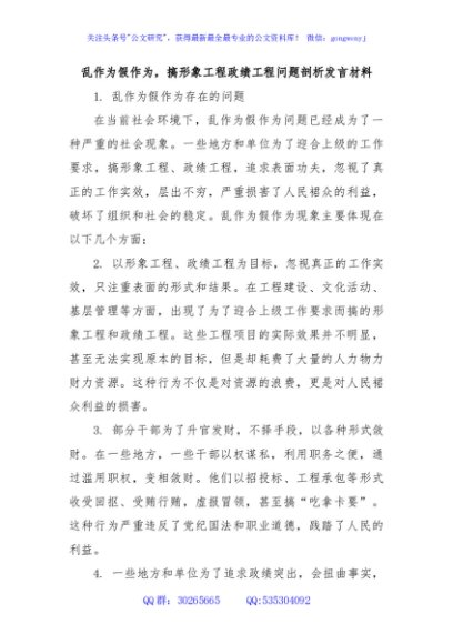 / 乱作为假作为,搞形象工程政绩工程问题剖析发言材料